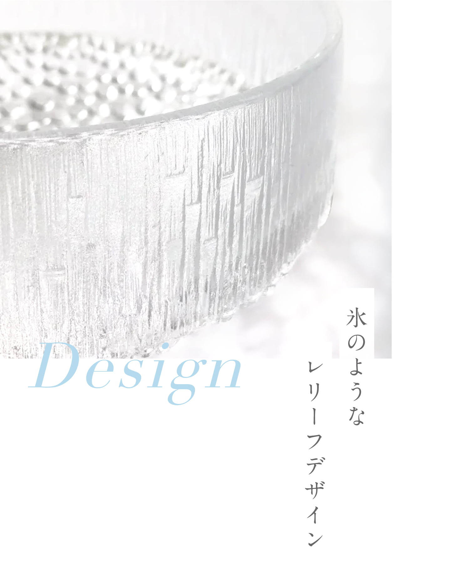 表面に施されたレリーフは、まるで氷の世界を覗き込んだかのような感覚に陥る美しさです。