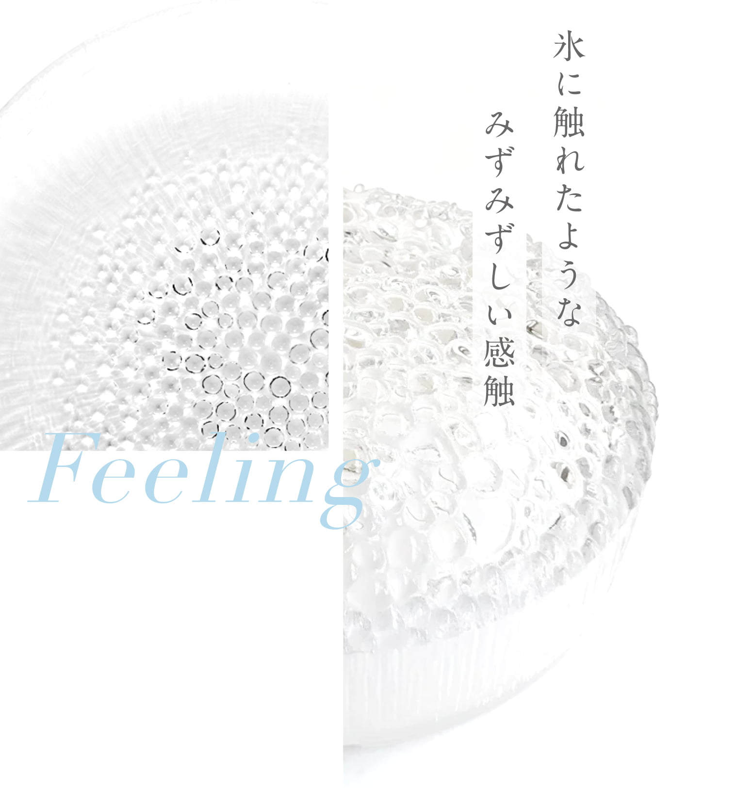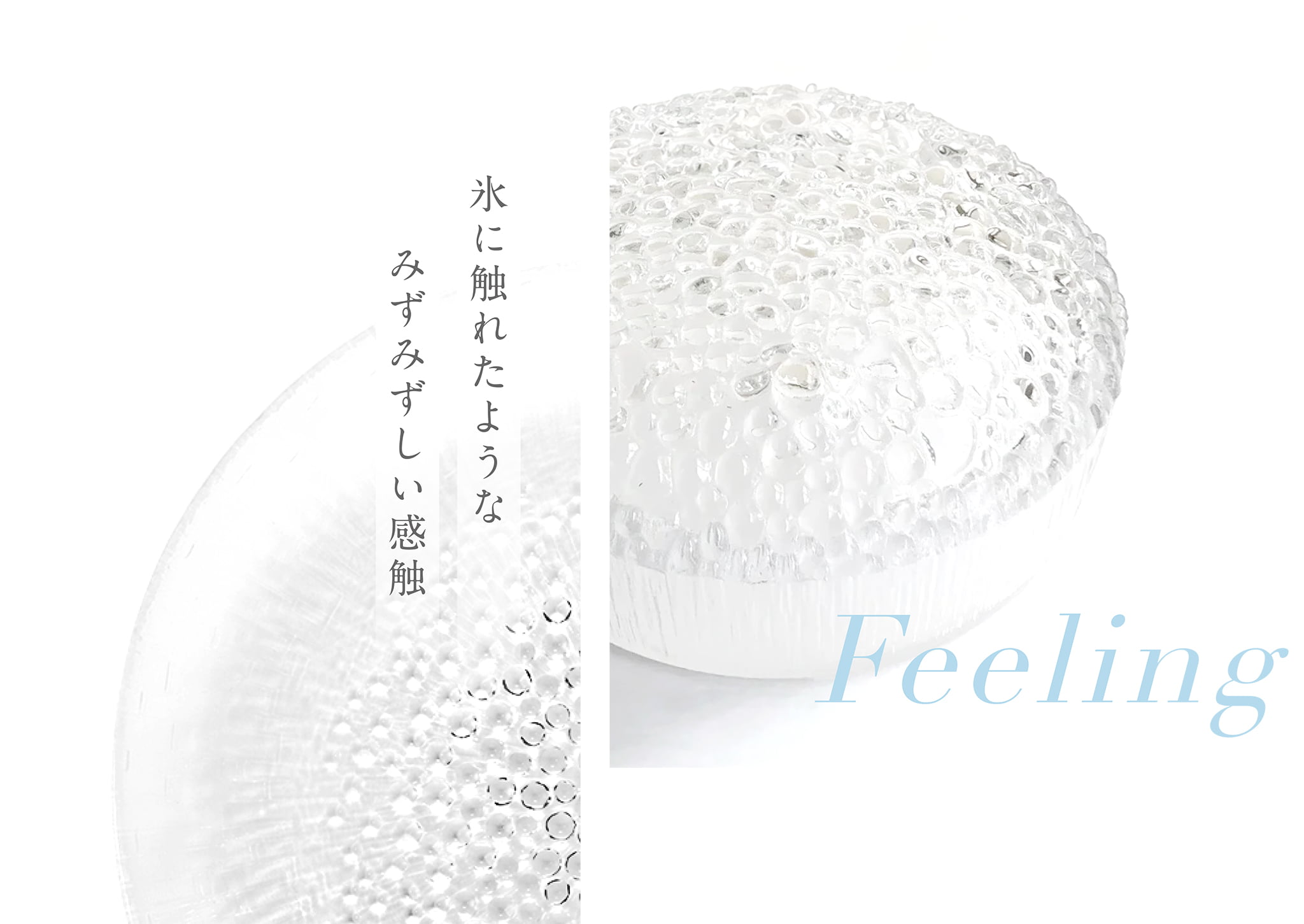 繊細な凹凸が生み出す独特の触感と光の陰影。まるでひんやりとした氷に触れたような、リアルな手触りと心地よい感覚が手に馴染みます。