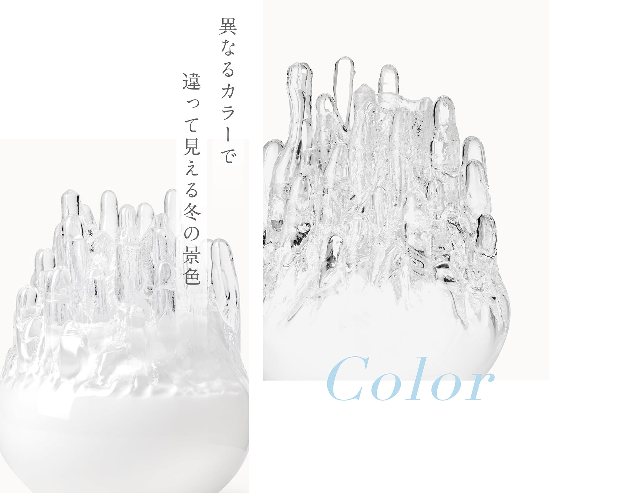 今にも溶け出してしまうようなリアルな質感と、自然の本質を投影したような洗練されたデザインが特徴です。